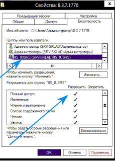 3. Группе IUSR добавляем права на папку с установленной базой 1С.