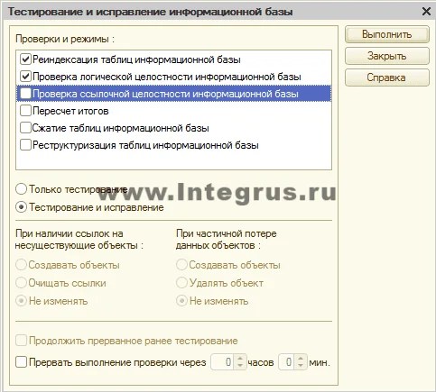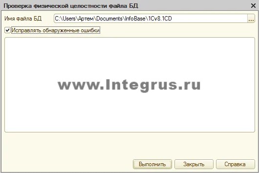 . Выберите файл Базы Данных, отметьте галочкой “Исправлять обнаруженные ошибки” и нажмите кнопку “Выполнить”. Дальше система все сделает за вас. Система сама проверит базу, найдет ошибки и исправит их. Во время работы программы «chdbfl.exe» не должно быть активных сеансов работы с 1С.