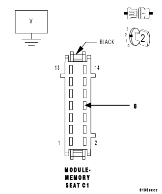 This code is set immediately after the Seat Memory Module receives a low charging system voltage message over the CAN B Bus or detects voltage under 9.5 volts on the (A110) Fused B(+) circuit.