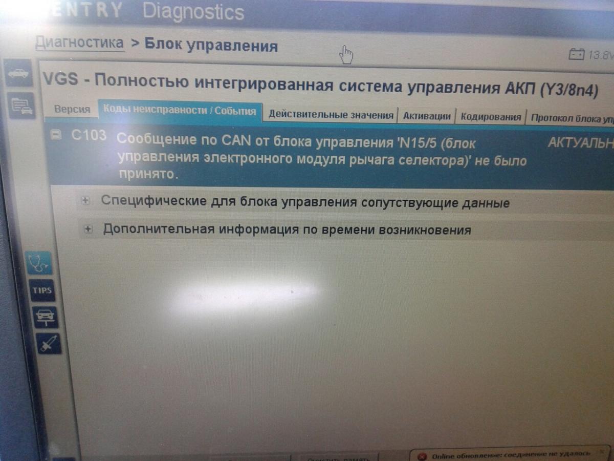 Утрачена связь с модулем управления коробкой передач