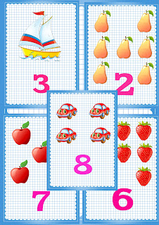В: Ребята, Незнайке дали карточки с нарисованными предметами и попросили написать подходящую цифру. Нам нужно проверить — всё ли правильно выполнил Незнайка.