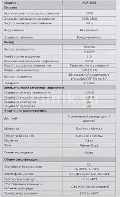 - Выходная мощность: 3000 ВA, 3000 Вт,