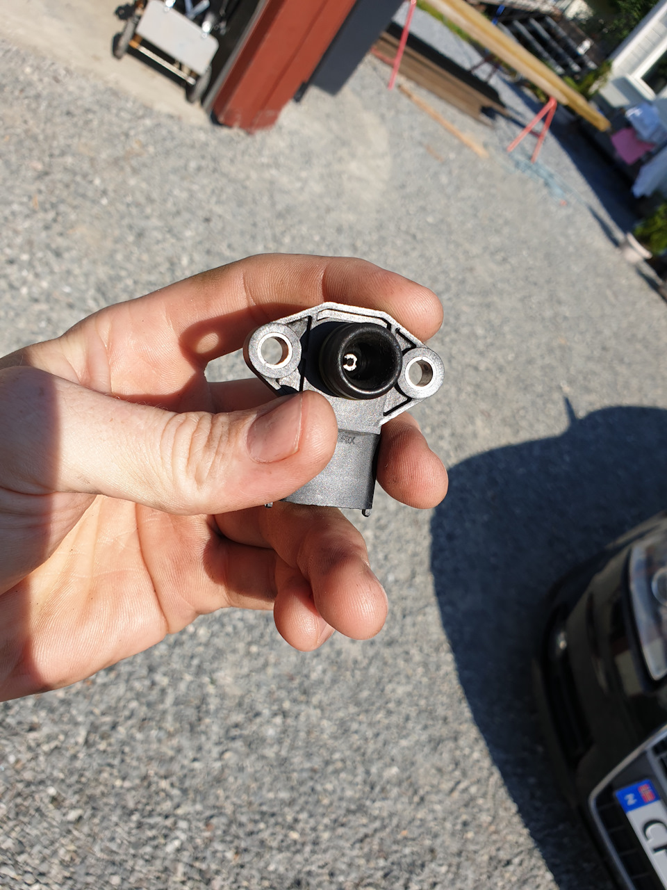 Чтение в глобальной паутине привело к проверки датчика который это давление и считывает. Снял датчик, потрогал и посмотрел, выглядел он как легкие курильщика. Прочистил его, продул воздухом и поставил на место. Чистим без агрессии и гнева.