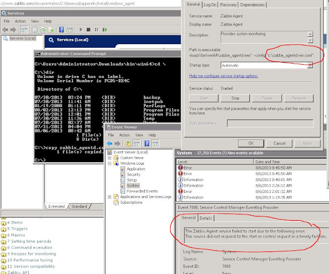Cannot start zabbix service on windows 7 .getting «Error 1053: The service did not respond to the start or control request in a timely fashion»