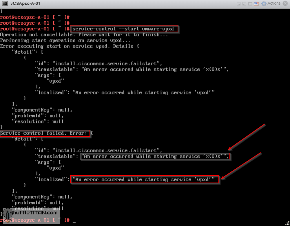 2. Starting “vCenter server (vmware-vpxd) service” would fail straight away – “An error occurred while starting service ‘vpxd’”