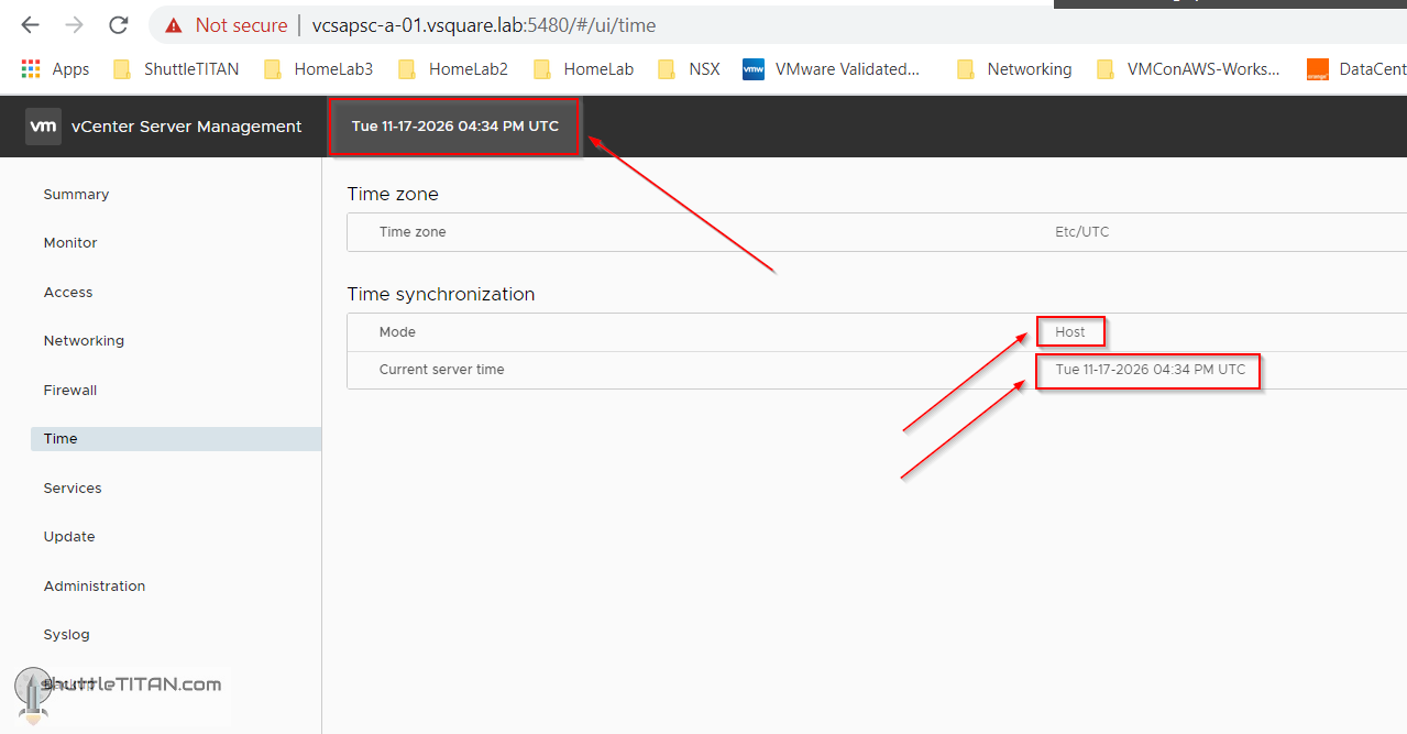After spending a few hours troubleshooting, restarting the appliance, monitoring logs and googling – I could not find anything concrete for me to dig further, until I noticed the vCenter had time travelled!! in the future i.e. year 2026, despite being setup to sync time with the ESXi host (where the time was correct):