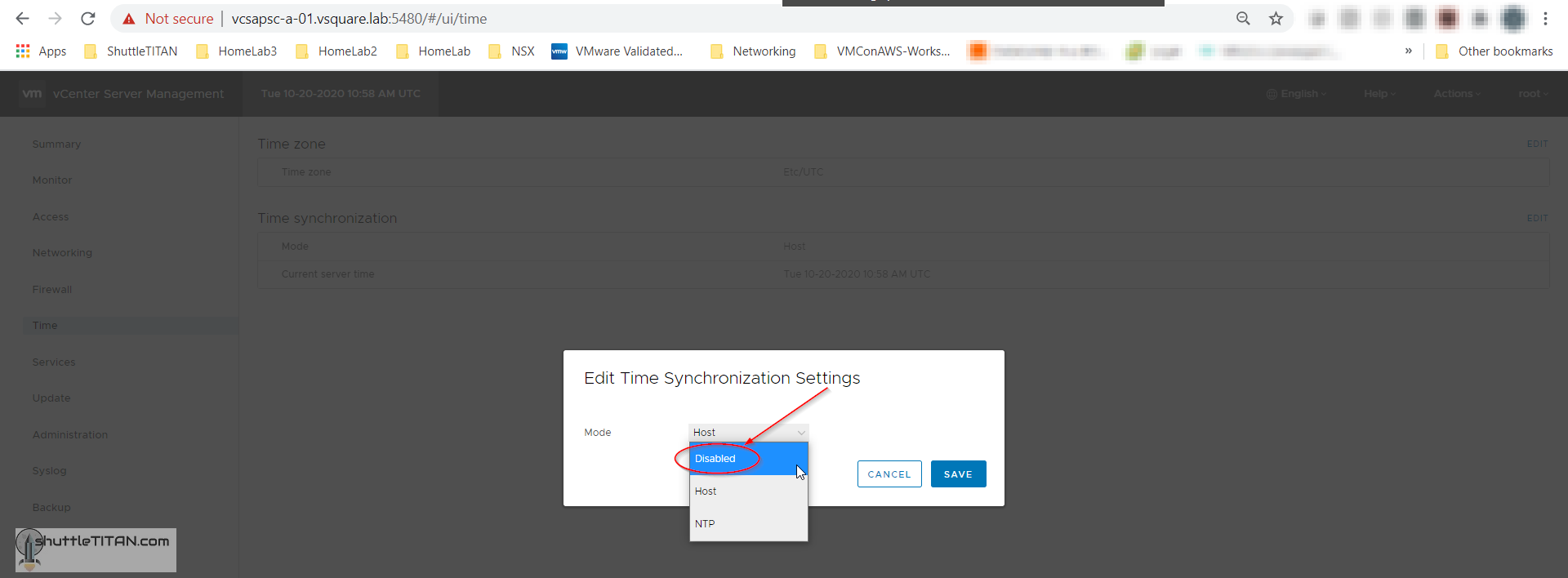 Anyhow, toggling the mode in “Synchronization Settings” to “disabled” and then back to “host” again – resolved the time sync issue, followed by successfully starting all vCenter services: