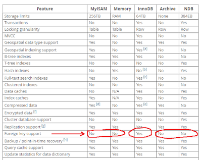 # wrong; the parent table in this example is MyISAM: