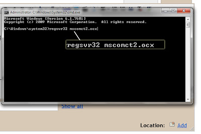 After opening cmd.exe, type in regsvr32 mscomct2.ocx