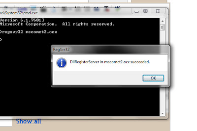 • regsvr32 C:\windows\system32\mscomctl.ocx
