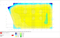 Для первоначального расчета нам необходимо значение равномерно распределенной нагрузки на поверхность плиты. Взять ее можно из протокола решения задачи, сложив суммарные нагрузки по Z, и разделив на площадь фундаментной плиты. Площадь фундаментной плиты можно попытаться измерить инструментом «определении площади полигона» на вкладке «управления». Если даже объект смоделирован в SCAD и хотелось бы рассчитать «так как есть», то все равно придется первый раз пробежаться с равномерно распределенной, потому что во так вот. При передачи данных в КРОСС нас будут спрашивать постоянно «открыть ли существующую площадку». Первый раз все-таки «нет», а потом возможно что «да». Увлекательный процесс задания грунтов и скважин не описывается, о нем можно прочитать здесь. Задаем равномерно распределенную нагрузку и отметку фундаментной плиты. Рассчитываем и предаем данные в SCAD. В окне «назначения коэффициентов упругого основания» можно изменить количество коэффициентов, а можно и не менять. После коэффициенты применяются к плите. Результат можно увидеть нажав правой кнопкой мыши на иконку «номера типов жесткости» панели «фильтры отображения и выполнив ряд манипуляций.