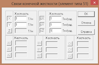 Эффективным, как и должно быть, является смешанный метод. Первым методом задаешь количество в том или ином направлении, а вторым затем разбиваем с тем же шагом. Так же не забываем изменить/задать тип элементов фундаментной плиты — это должен быть 44 тип КЭ (вкладка «назначение» — «назначение типов конечных элементов»). Ранее у нас колонны/стены были защемлены якобы в фундаменте. Сейчас вместо него плита и если мы уберем защемление, то все наше «добро» «провалится» и расчет не будет выполнен. Есть несколько подходов к решению этой проблемы. Некоторые защемляют несколько узлов по краям и в середине, или полосами вдоль и поперек. Некоторые используют 51 тип КЭ. Я пробовал и тот и другой вариант. При использовании защемления в этих местах получим пиковое армирование, а в случае 51 КЭ — нет. В остальном разницы не нашел, поэтому я за 51 КЭ. Все узлы фундаментной плиты выделяем и задаем «связи конечной жесткости» («узлы и элементы» — «специальные элементы»).