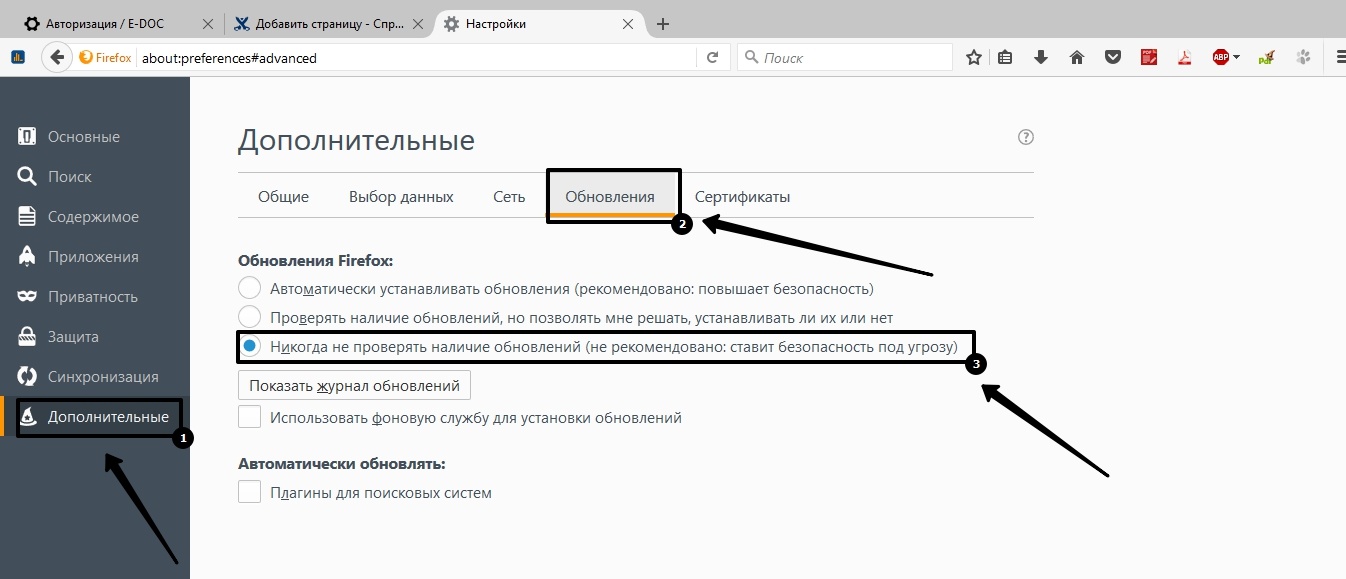 Для отключения автоматического обновления браузера Mozilla Firefox необходимо: