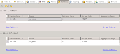 В целях повышения производительности работы кубов в SSAS предусмотрена возможность разбиения групп мер на партиции. Вот так это выглядит в Management Studio: