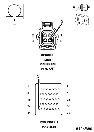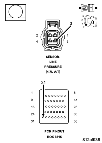 The monitored Line Pressure Sensor voltage should always be between 0.35 and 4.75 volts. Any monitored voltages outside these parameters indicate an Line Pressure Sensor or wiring problem and