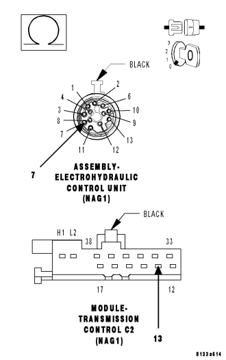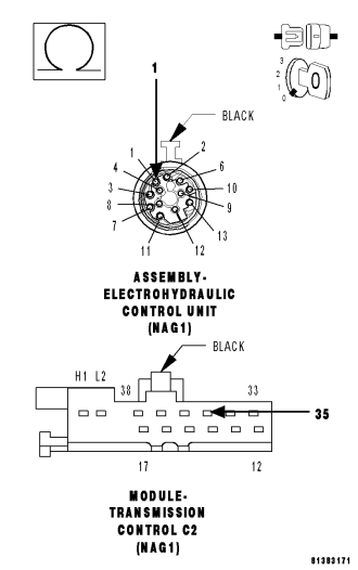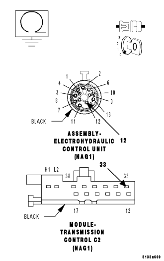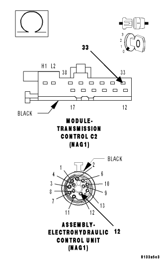 - Replace the Input Speed Sensor 2 (N3). Refer to 21- AUTOMATIC TRANSMISSION-AUTOMATIC TRANSMISSION NAG1/SERVICE INFORMATION for the appropriate service procedure.