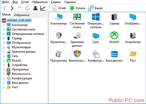 Начнем с одной из самых известных и комплексных программ для получения информации о компонентах системы, проверке стабильности и тесте производительности. Конечно же, это AIDA64. Интерфейс программы предельно понятен и прост, все разделено на группы.