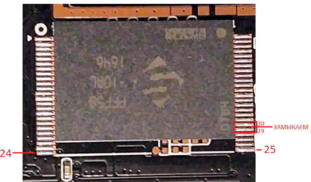 Для микросхем памяти Samsung серии K9… — замыкаем ноги 29 и 30