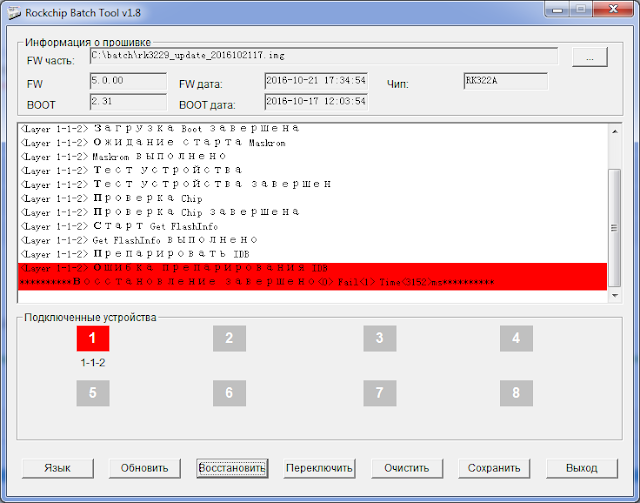 При прошивке smart box v003 (s/n BQR0318D0291) — ошибка prepare idb fail