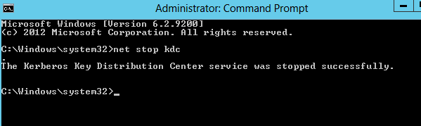 B. Stop Kerberos Key Distribution Center (KDC) service in CHENSDC (problematic server):