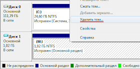 2. Щелкните правой кнопкой мыши раздел, который нужно удалить и выберите команду Удалить том.
